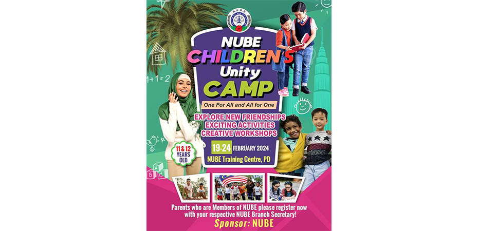 Pada persidangan Perwakilan NUBE ke-25 yang diadakan pada 19 Ogos baru-baru ini, Perwakilan sebulat suara telah memutuskan untuk menganjurkan Kem Madani Kanak-Kanak NUBE untuk anak-anak kepada Ahli NUBE yang berumur antara 11 dan 12 tahun.
