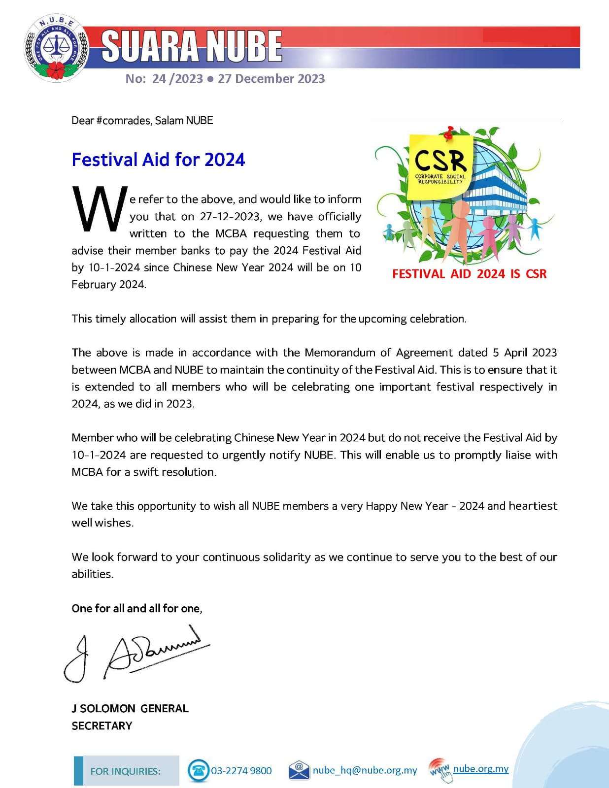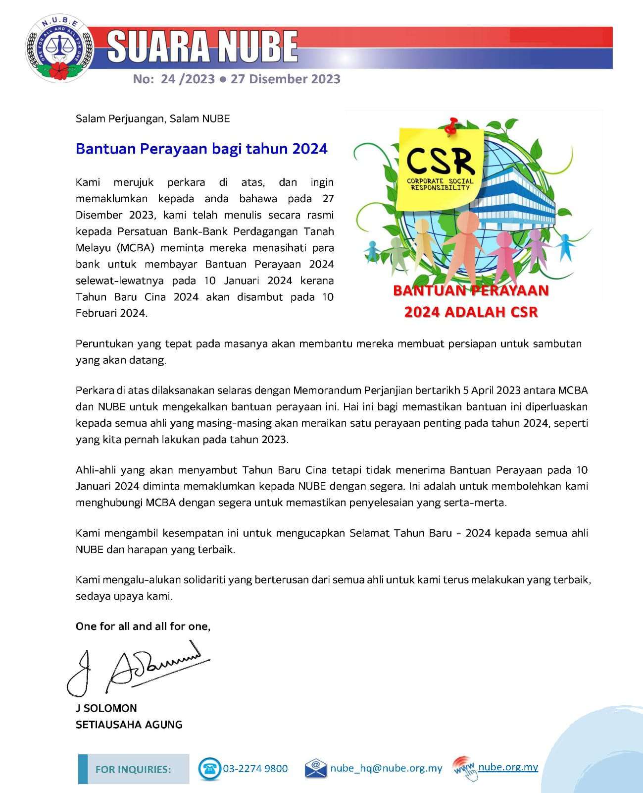 Perkembangan terkini berkaitan "Bantuan Perayaan Tahun 2024"
