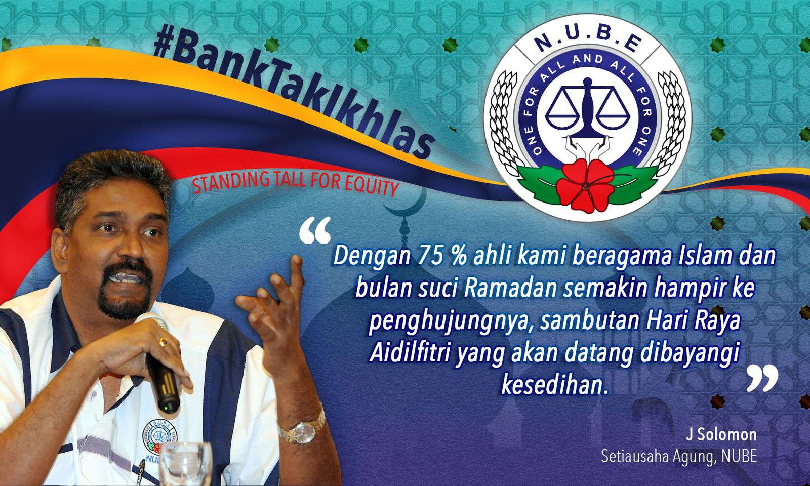 Ketika kita menghampiri penghujung bulan suci Ramadan, semangat Hari Raya Aidilfitri terasa suram bagi banyak orang. J Solomon dari NUBE menyoroti isu penting dalam sebuah Artikel Utusan Borneo Online: 75% ahli kami, yang menjalani ibadah di bulan yang suci ini, menghadapi perlakuan tidak adil dari bank-bank besar, yang menafikan hak Bantuan Perayaan kepada pekerja B40 dan M40.
