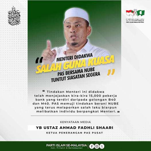 Dalam satu kenyataan TV PAS, YB Ustaz Ahmad Fadhli Shaari, Ketua Penerangan PAS Pusat telah berkata bahawa PAS mengikuti rapat isu Kesatuan Kebangsaan Pekerja-Pekerja Bank (NUBE) Wilayah Utara yang telah membuat laporan polis terhadap Menteri Sumber Manusia, Steven Sim Chee Keong di mana beliau dikatakan telah menyalahguna kuasa dalam isu pembayaran bantuan perayaan bagi pekerja-pekerja bank.