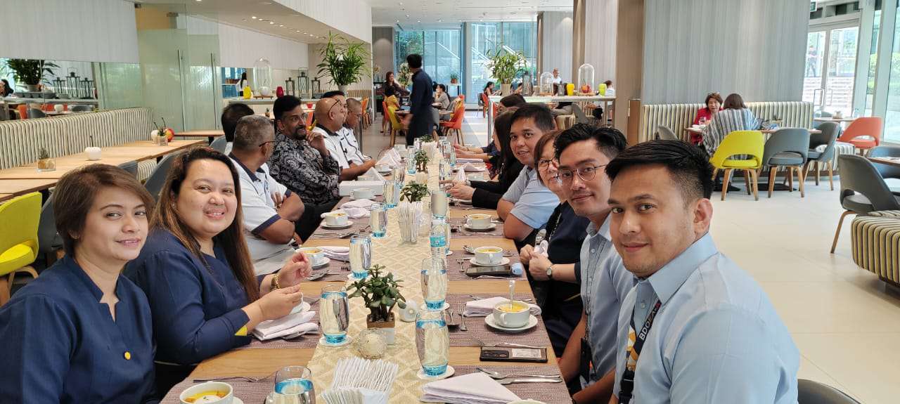 Selepas perbincangan awal, sebuah pertemuan makan tengah hari diadakan antara wakil NUBE/BDOEA dan pengurusan BDO, yang dipimpin oleh Ketua HR, Puan Evelyn, dan Ketua Hubungan Industri beliau. Sesi ini merupakan pertukaran pengetahuan dan pengalaman yang berharga, menonjolkan perspektif pelbagai dari pengurusan dan wakil kesatuan dari pelbagai negara.