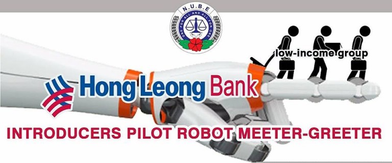Sementara itu, kami menggesa ahli-ahli di Hong Leong Bank atau mana-mana bank untuk memaklumkan kepada NUBE sekiranya teknologi seperti itu diperkenalkan ditempat kerja masing-masing yang boleh menyebabkan peningkatan dalam pengganguran rakyat Malaysia sekaligus melemahkan pentadbiran Kerajaan.
