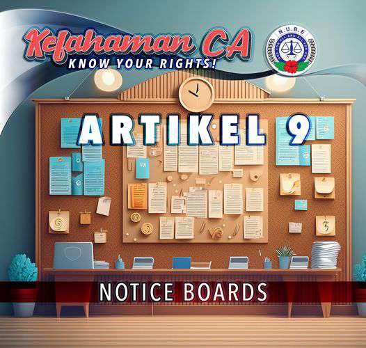 Dalam post kali ini, kita akan membincangkan Artikel 9 daripada Perjanjian Kolektif ke-19 yang melibatkan penggunaan papan notis oleh Kesatuan.