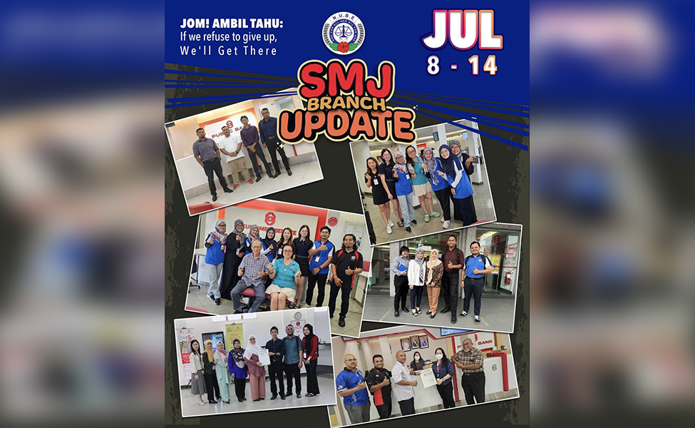 Pada 11/07/2024, Branch Level Meeting (BLM) di Public Bank Cawangan Muar & Jalan Sayang dihadiri oleh Sdra Kamarudin, Sdra Shahalam, Sdra Aznor Sdra Fahmi. Selepas mesyuarat, AJK-AJK telah menasihati ahli untuk mengikut arahan menghentikan penglibatan dalam E-Learning serta Aktiviti Bank.