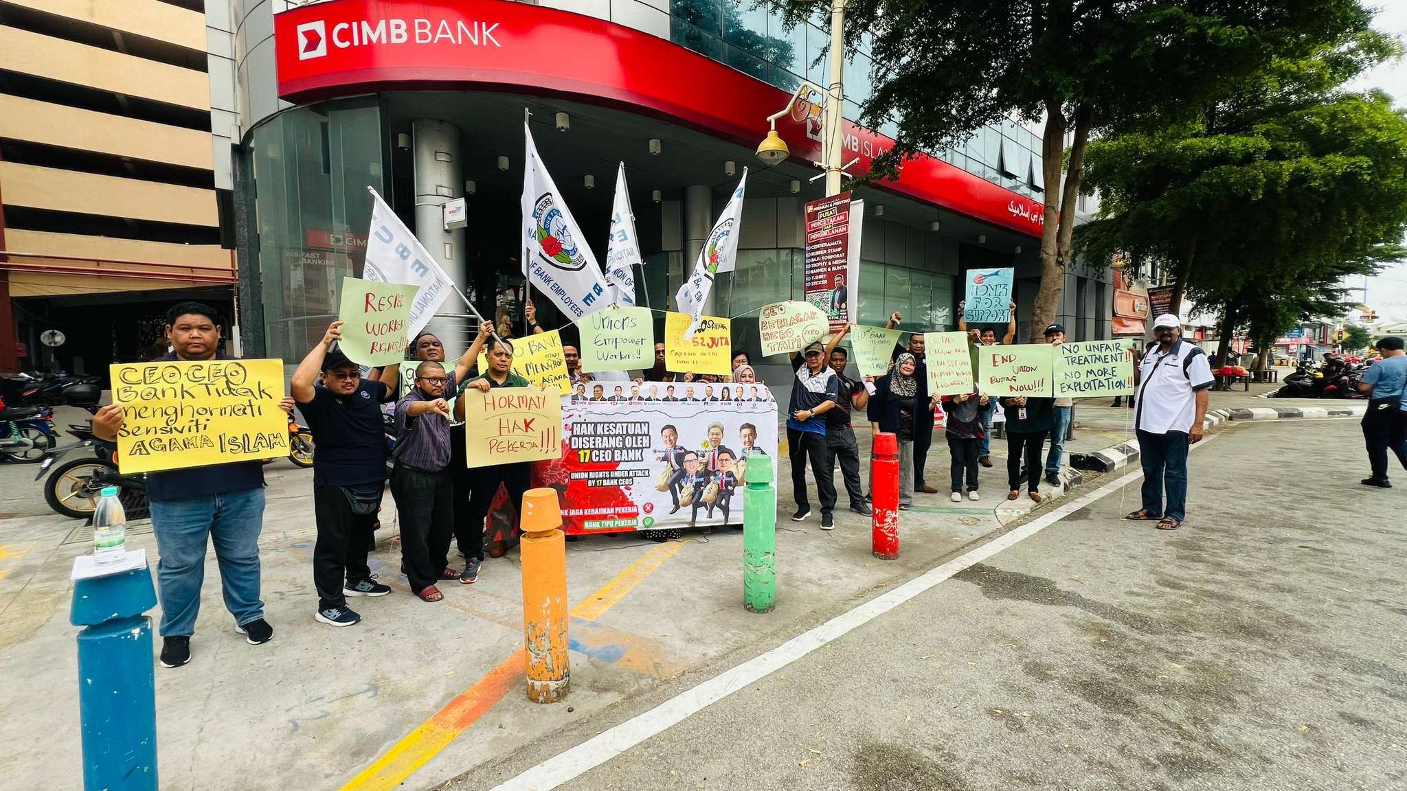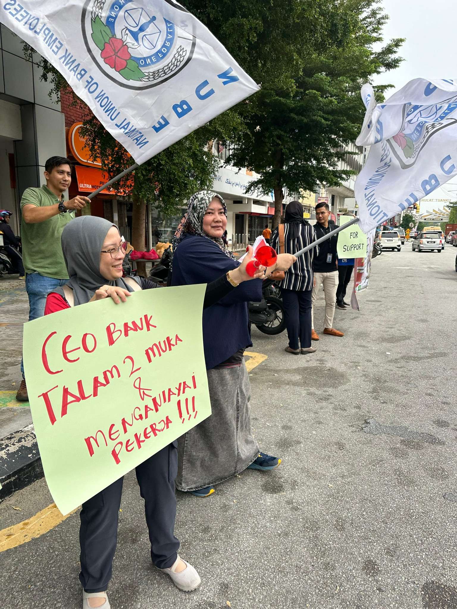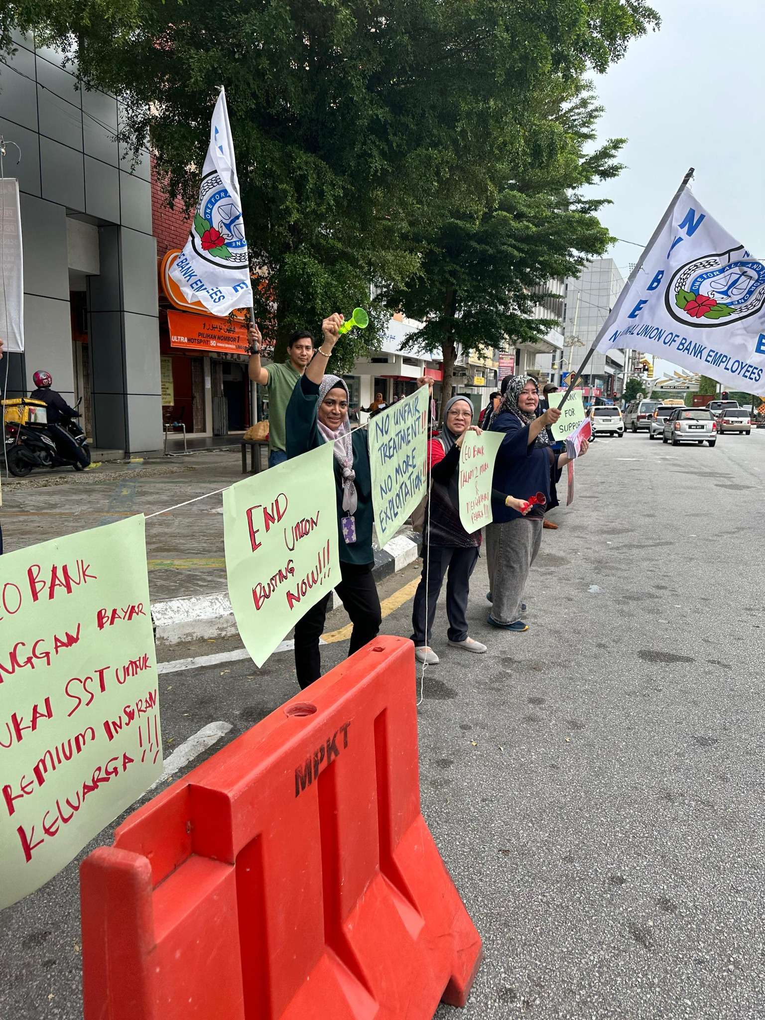 Hari ini, cawangan NUBE KT telah memulakan piket di CIMB Jalan Sultan Ismail, Kuala Terengganu dari jam 12.00 tengahari hingga 1.00 tengahari. Suasana dipenuhi dengan semangat solidariti dan harapan. Ini adalah hari pertama piket kami. Mulai esok, cawangan-cawangan NUBE di seluruh Semenanjung Malaysia akan turut berpiket.