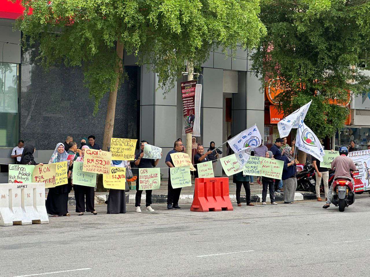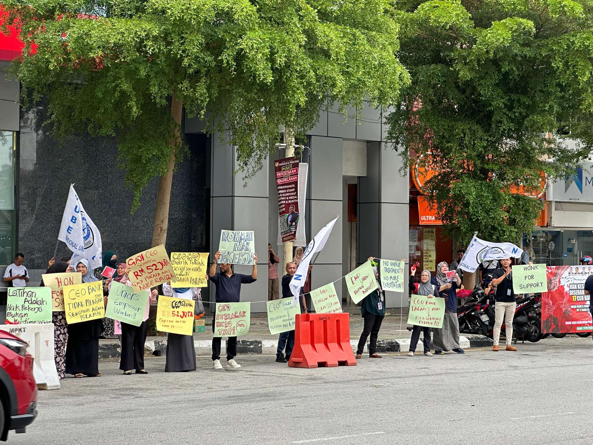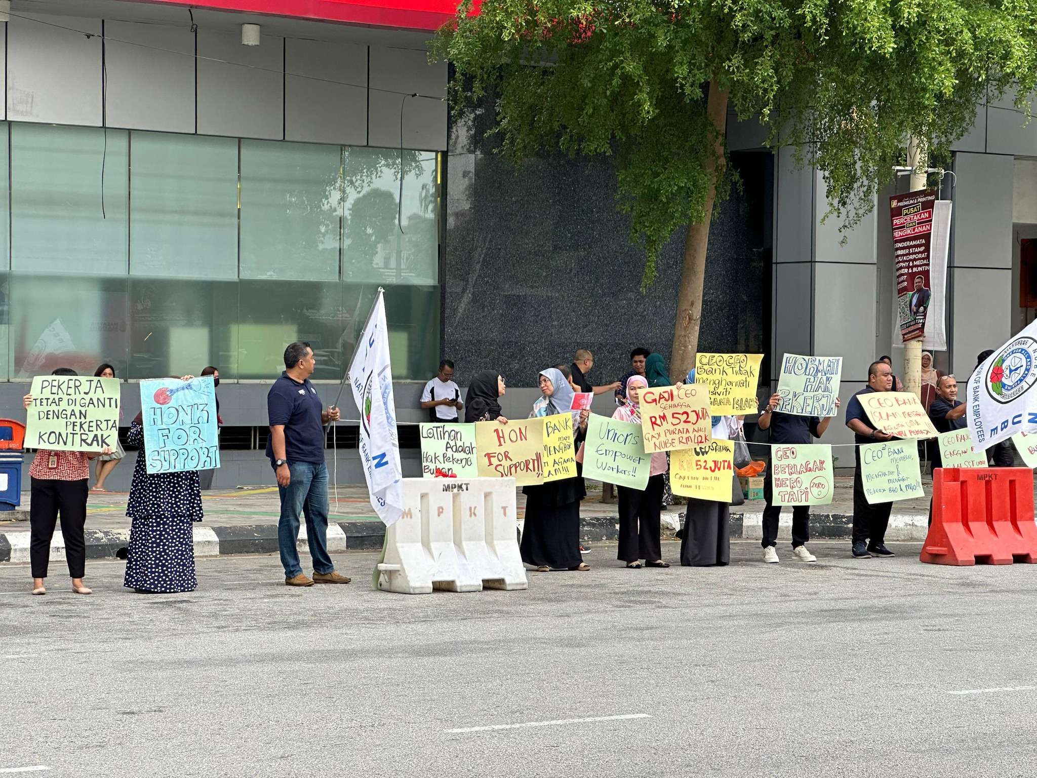 Hari ini, cawangan NUBE KT telah memulakan piket di CIMB Jalan Sultan Ismail, Kuala Terengganu dari jam 12.00 tengahari hingga 1.00 tengahari. Suasana dipenuhi dengan semangat solidariti dan harapan. Ini adalah hari pertama piket kami. Mulai esok, cawangan-cawangan NUBE di seluruh Semenanjung Malaysia akan turut berpiket.