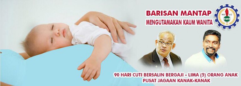BARISAN Mantap MTUC dengan sokongan anda akan berusaha untuk mendapatkan cuti bersalin minima 90 hari bergaji untuk semua wanita sehingga lima (5) orang anak dan penubuhan pusat jagaan yang baik serta berkualiti yang mampu bagi pekerja berpendapatan rendah dan sederhana.